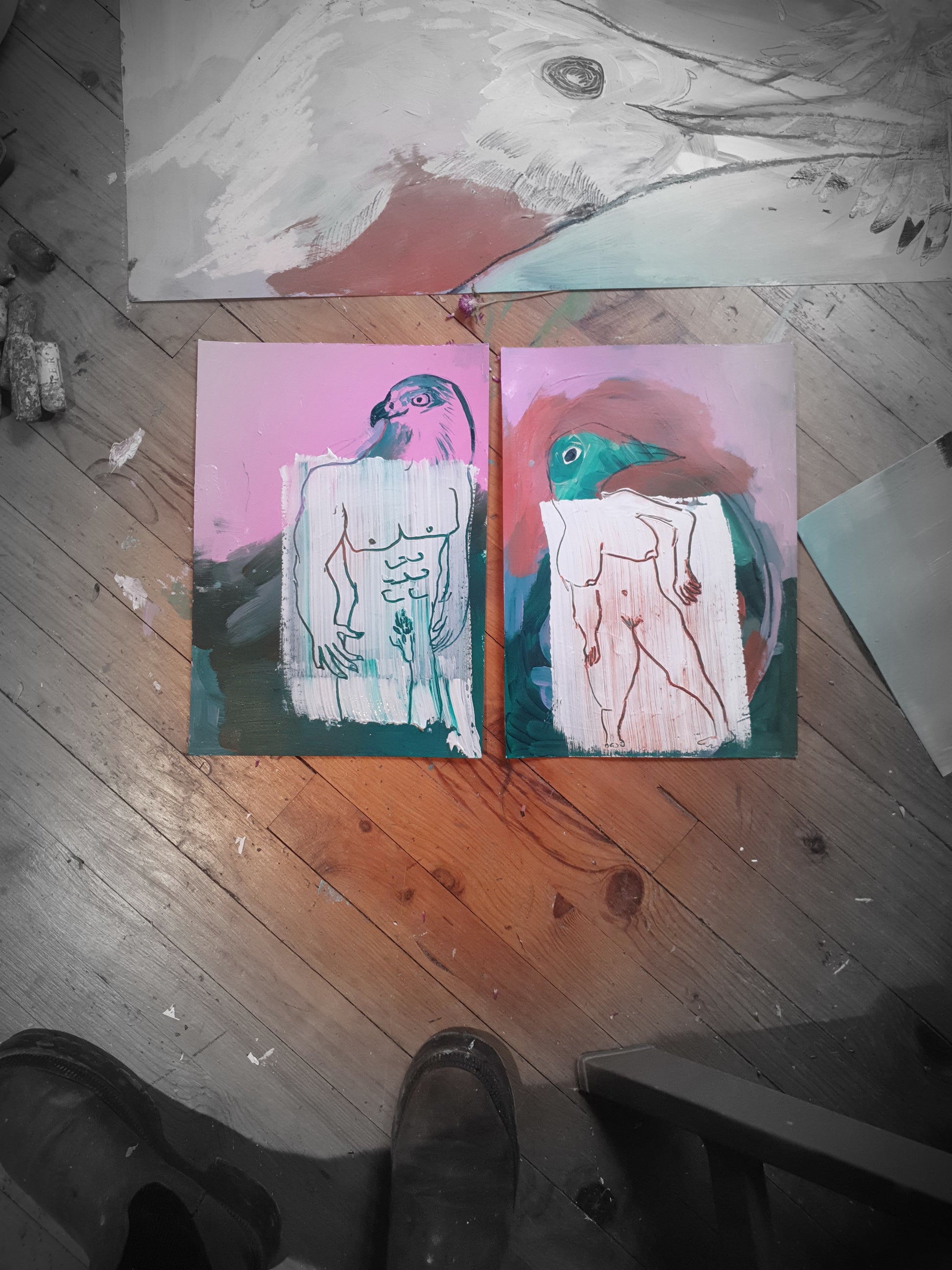 Technique : acrylique et crayon sur papier.