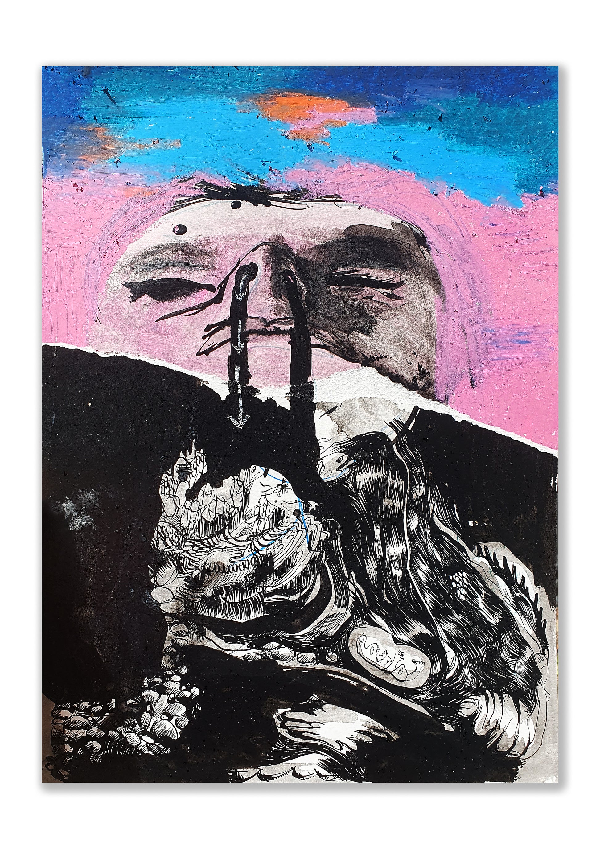 oeuvre originale, pastel gras, crayon et encre sur papier de 290g/m2, 30 x 40 cm, 2024