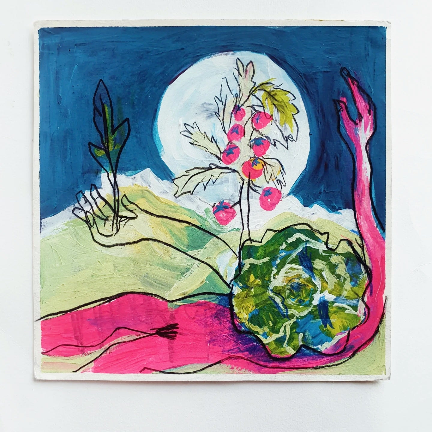 Oeuvre originale, acryique et crayon sur papier, 20 x 20 cm, 2023 Certificat d'authenticité. Signée et daté à l'arrière. Envoi suivi.