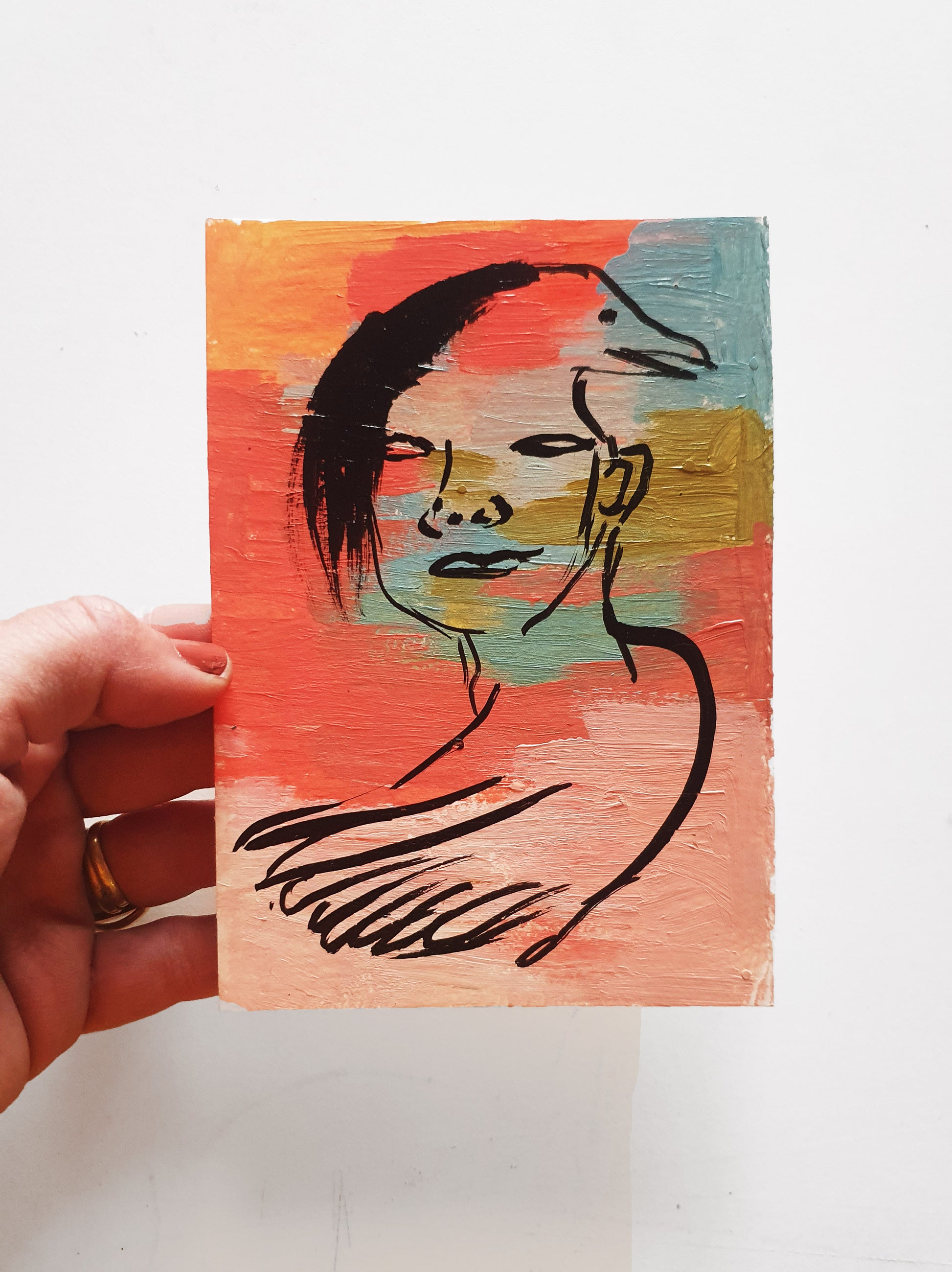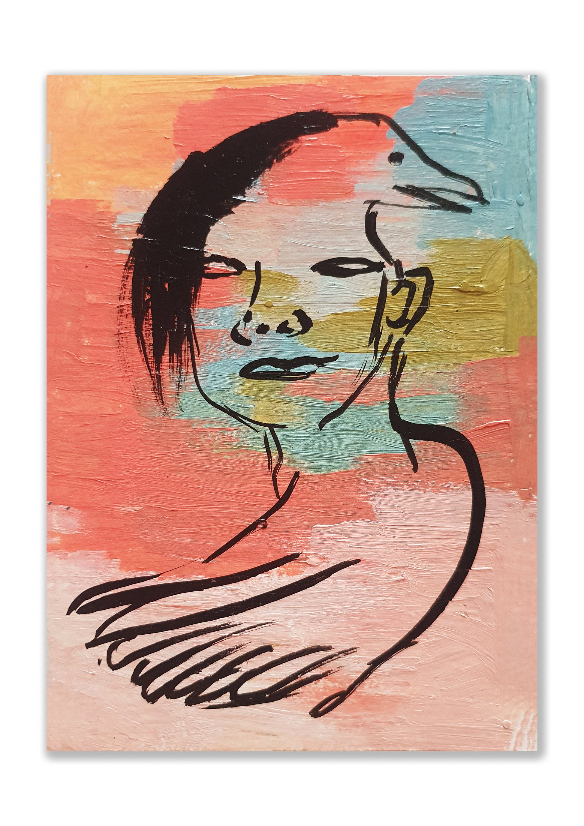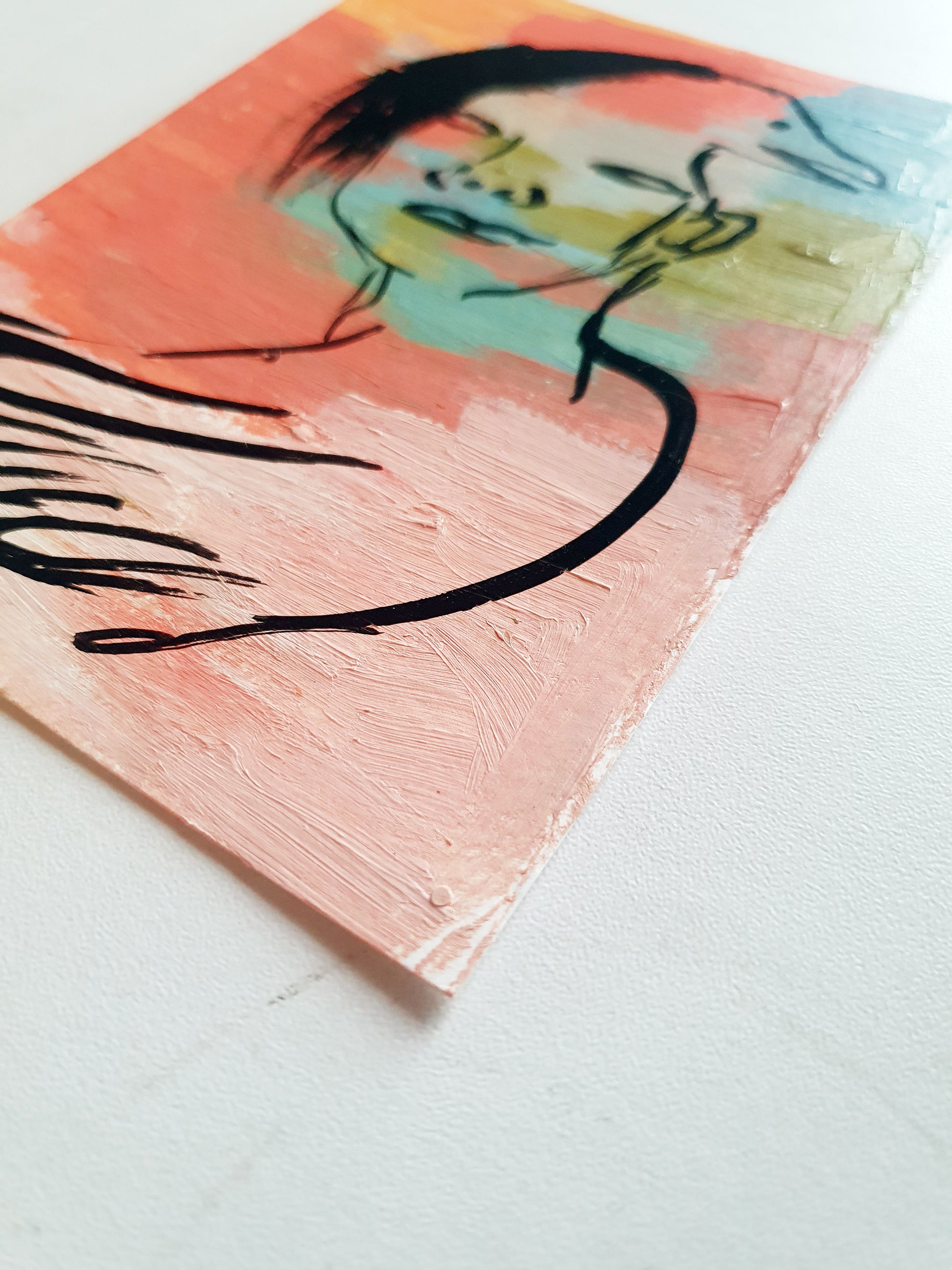 Oeuvre originale, acryique et encre sur papier, 10 x 15 cm, 2025 Certificat d'authenticité. Signée et daté à l'arrière. Envoi suivi.