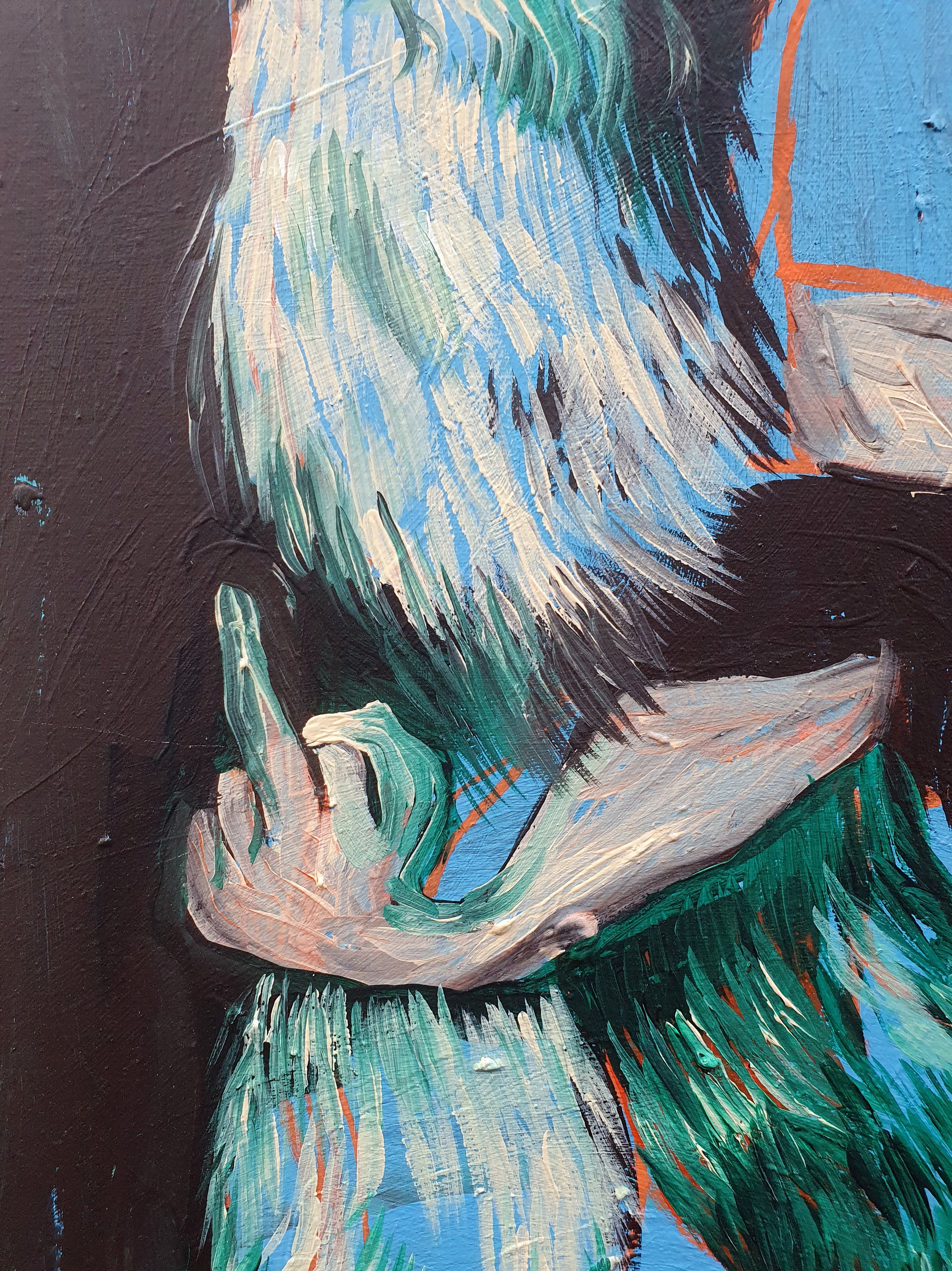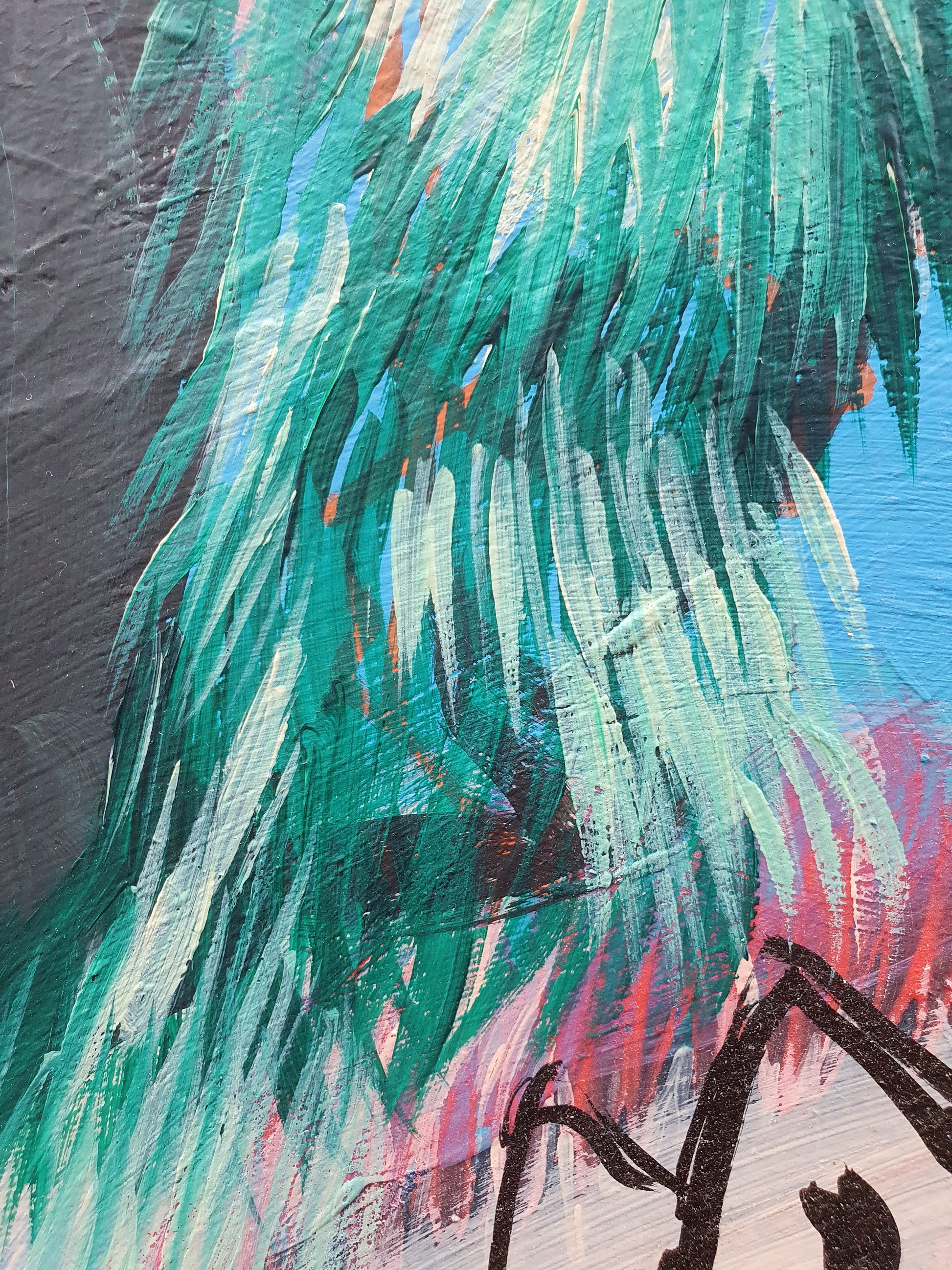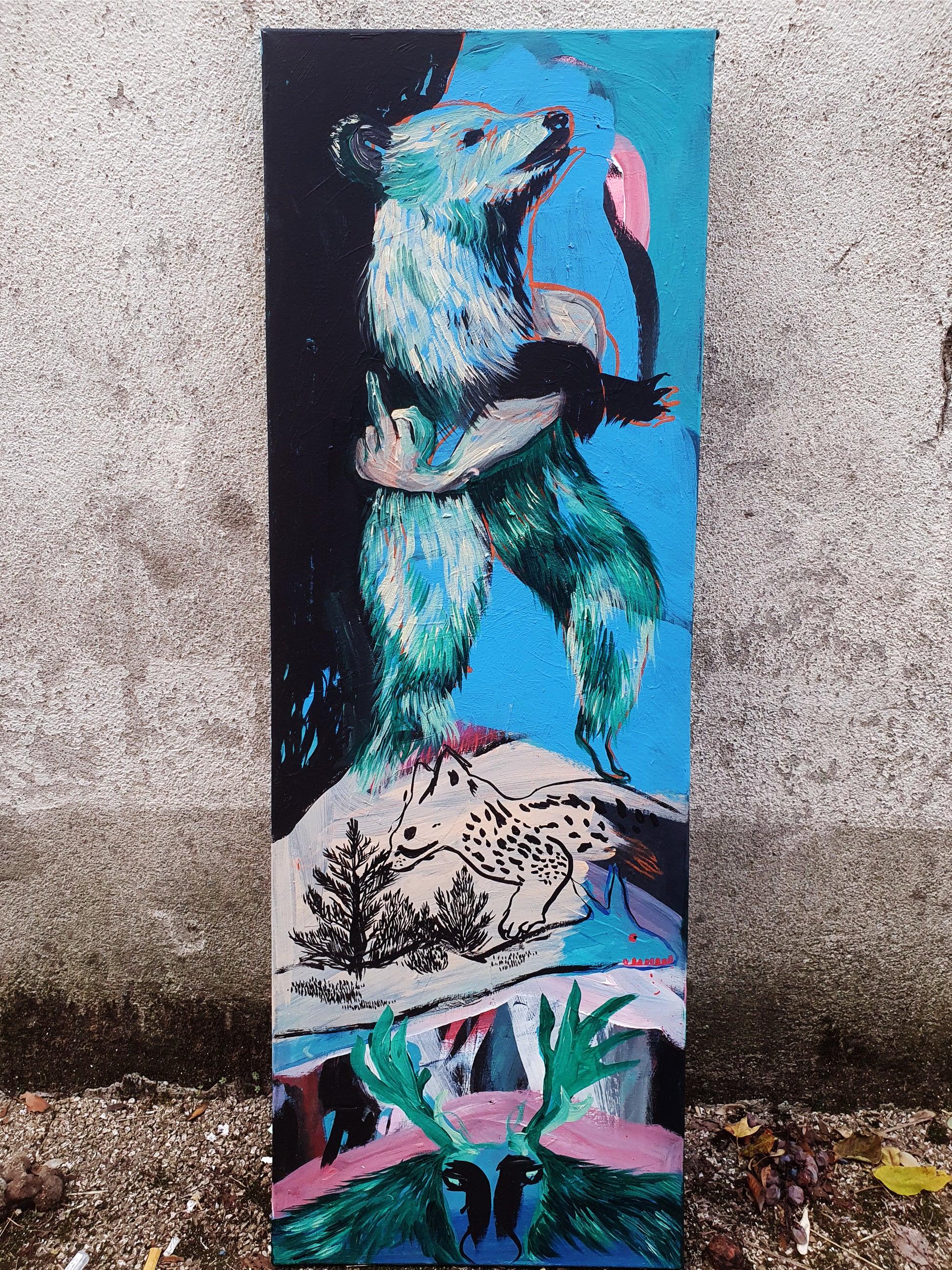 oeuvre originale, acrylique sur toile, un petit trou au niveau de la toile de la taille d'une pièce d'un euro que j'ai réparé moi-même, 40 x 120 cm, 2025