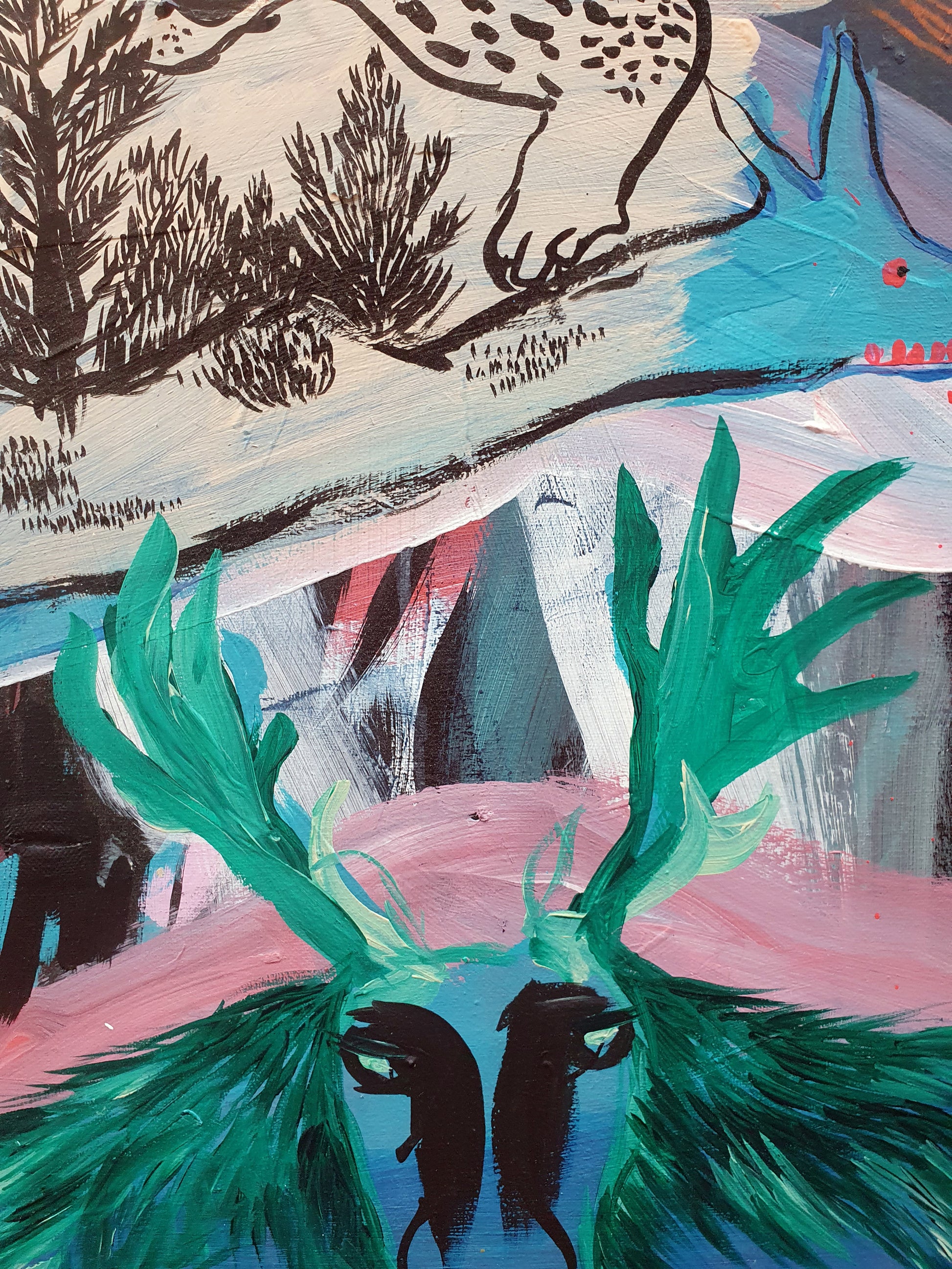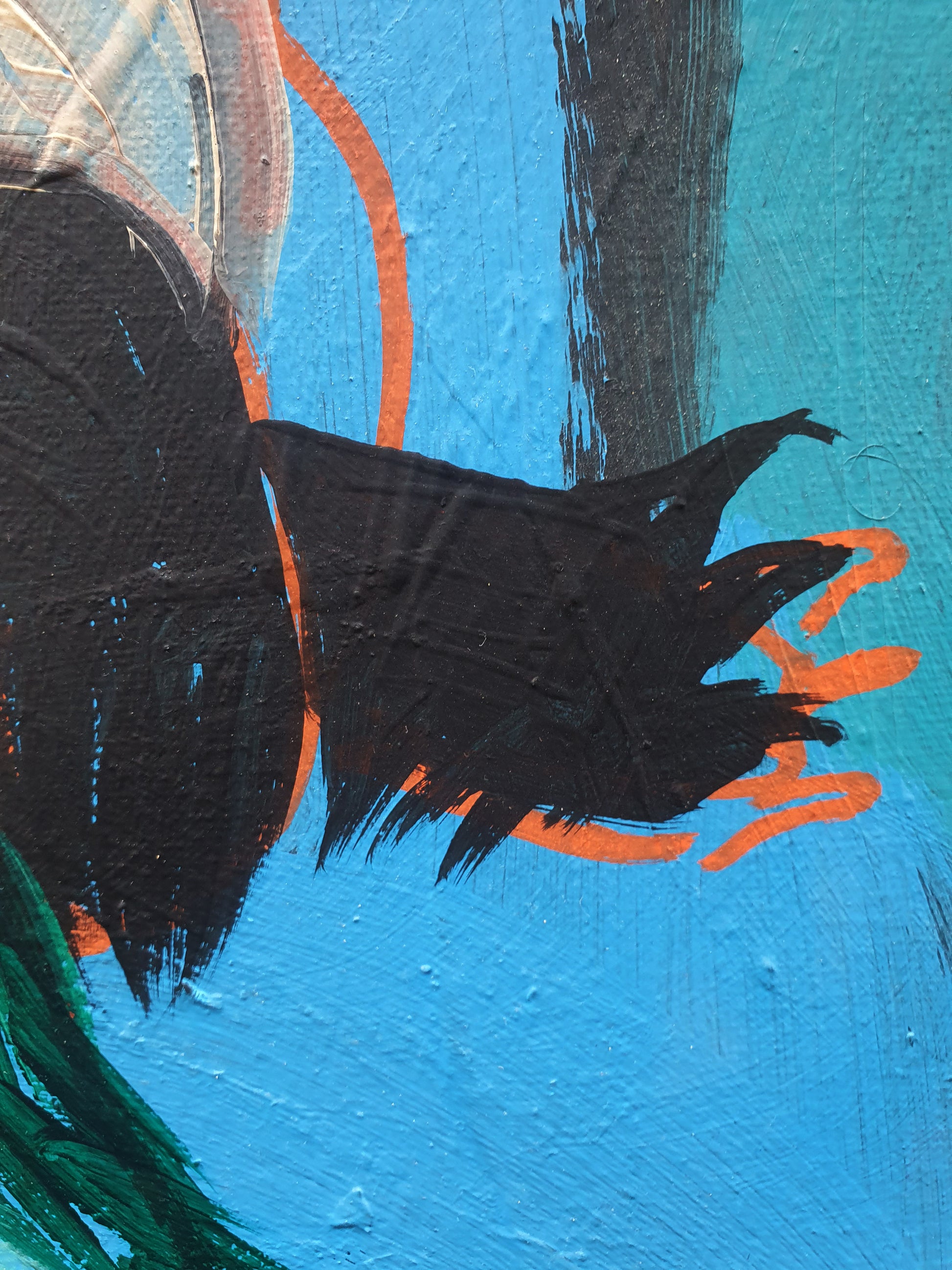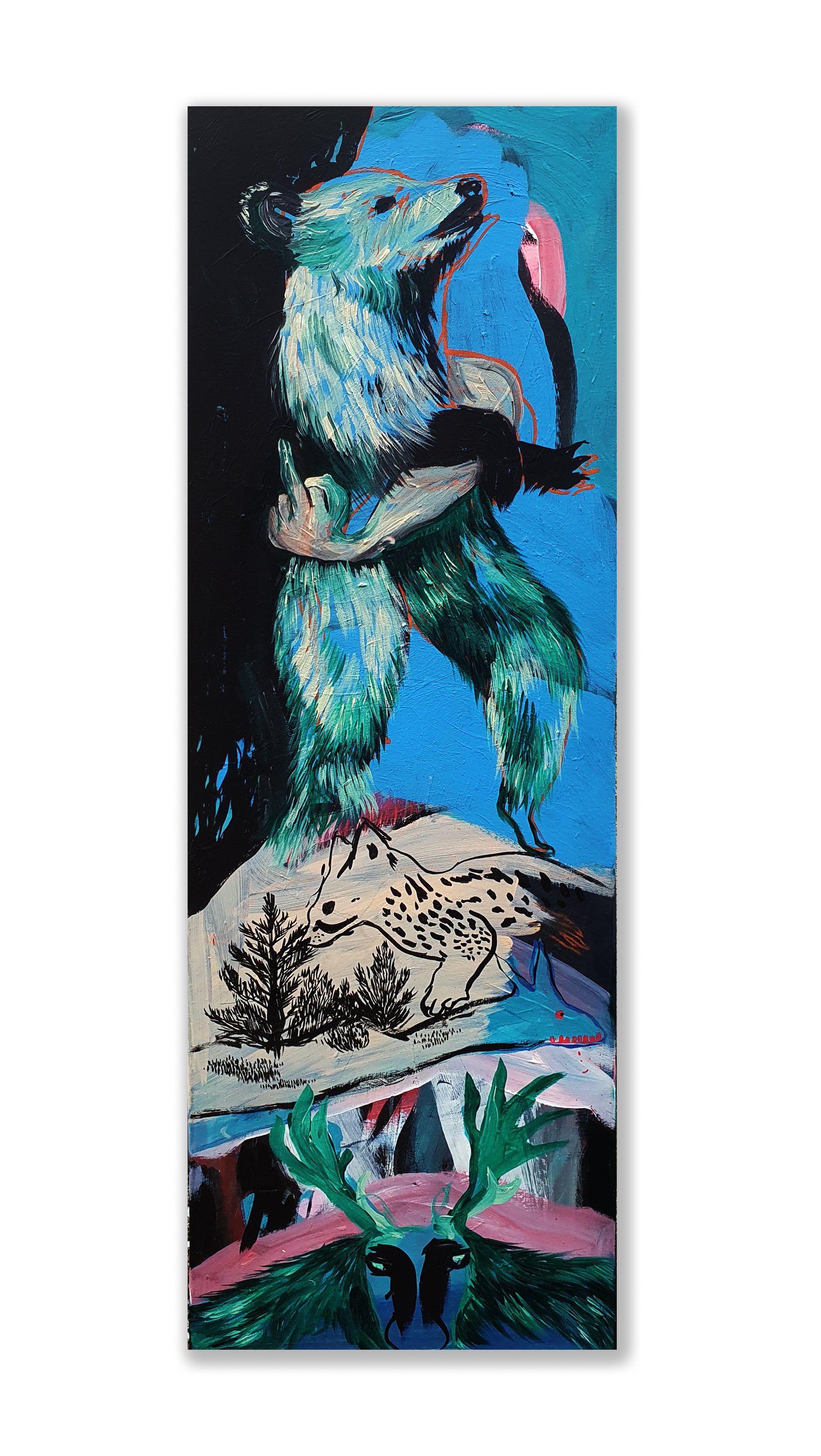 oeuvre originale, acrylique sur toile, un petit trou au niveau de la toile de la taille d'une pièce d'un euro que j'ai réparé moi-même, 40 x 120 cm, 2025