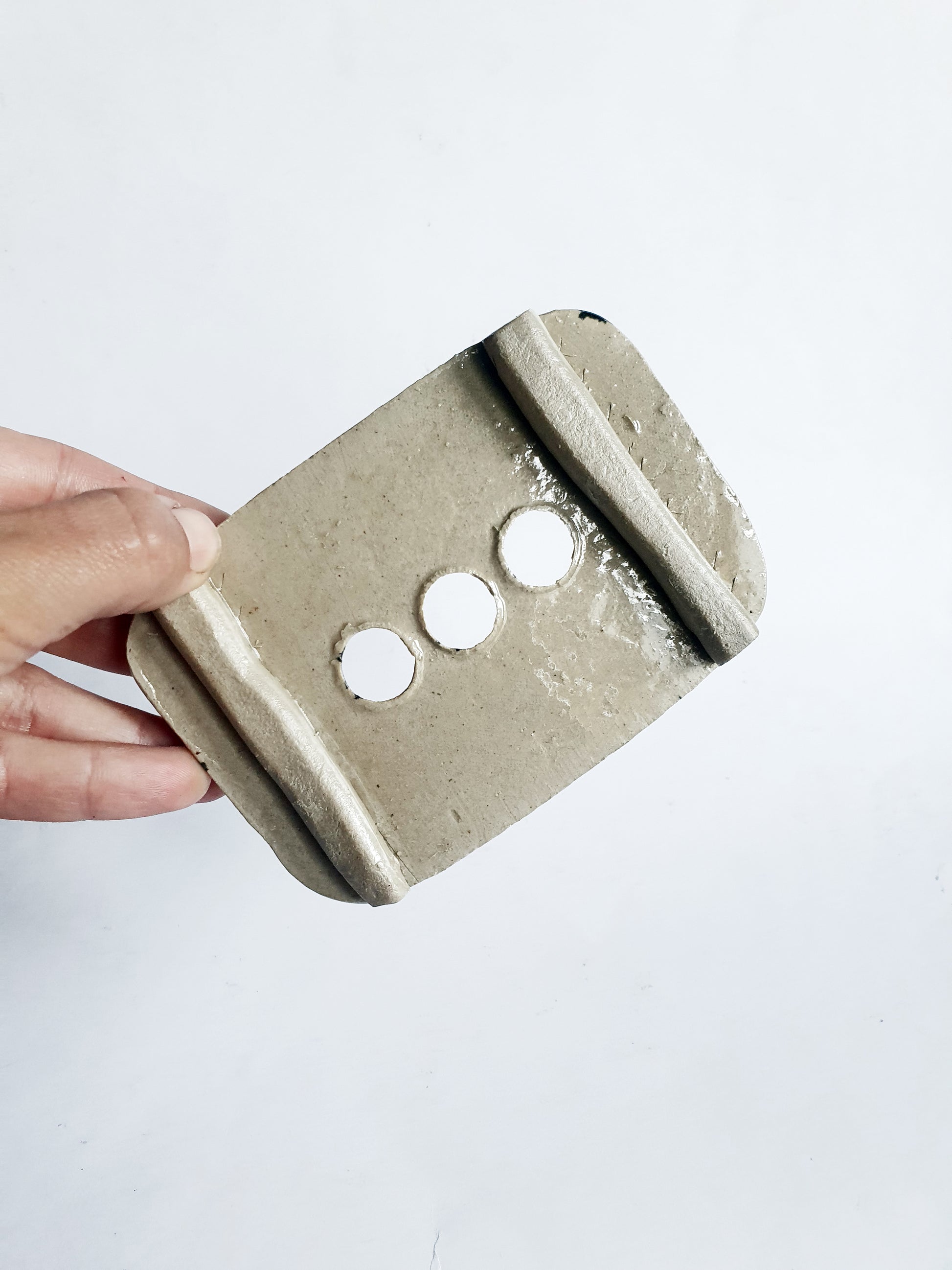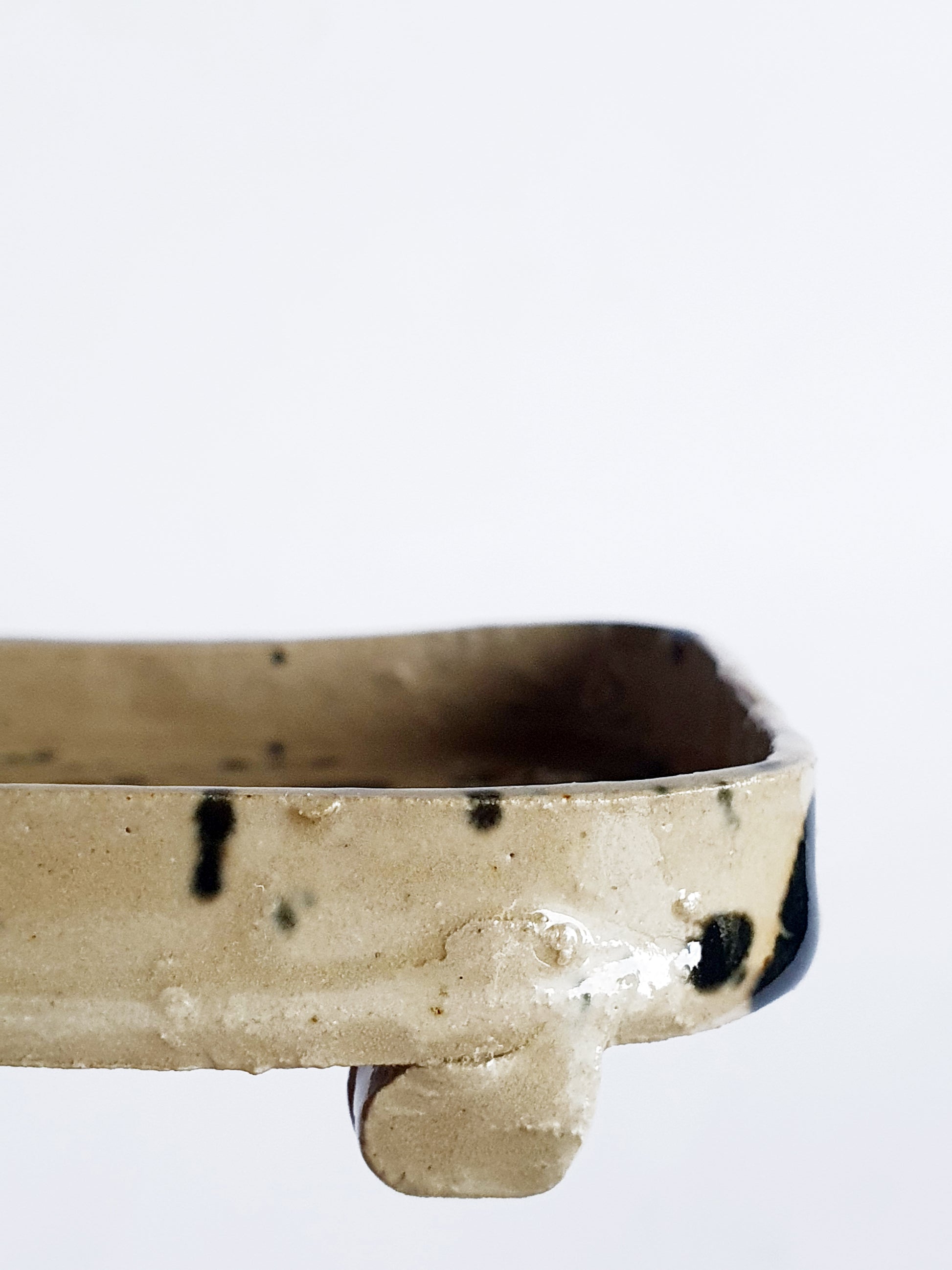 Porte savon fait main noir et beige tache